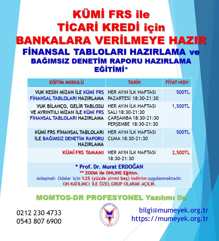 ** Eğitim PROFESYONEL MOMTOS-DR (BAĞIMSIZ DENETİM RAPORU HAZIRLAMA) YAZILIMI İLE VERİLMEKTEDİR ** |